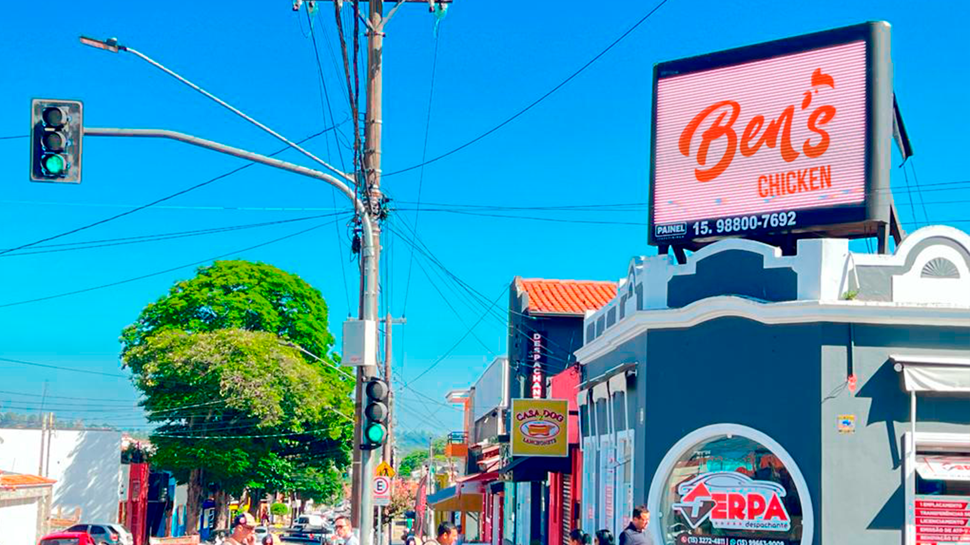 Posicionado dentro de um dos açougues mais tradicionais de Itapetininga, o painel do Morelli fala diretamente com famílias, comerciantes e consumidores fiéis da região. Movimento intenso, principalmente nos fins de semana.