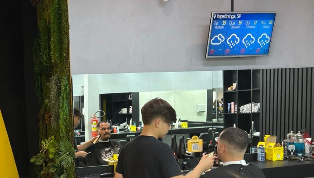 Localizado em uma barbearia moderna e bem frequentada, o painel da Barbearia Kennedy alcança um público jovem e masculino, em um ambiente descontraído e de consumo regular. A mídia fica visível durante todo o atendimento, reforçando sua marca com impacto.