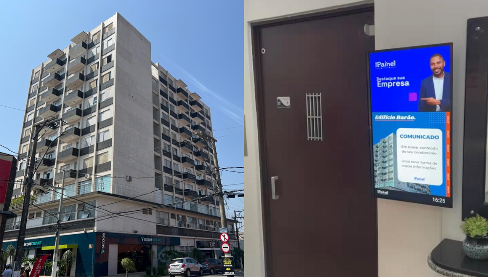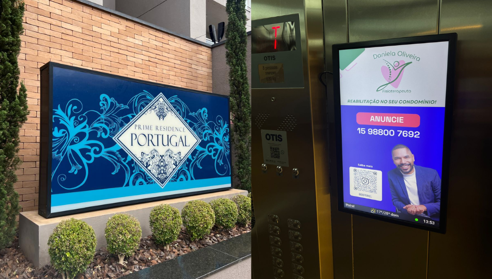 O painel está instalado nos elevadores do Edifício Portugal, prédio residencial localizado no centro da cidade. A mídia atinge moradores e profissionais diariamente, ideal para reforço de marca e serviços com foco local.